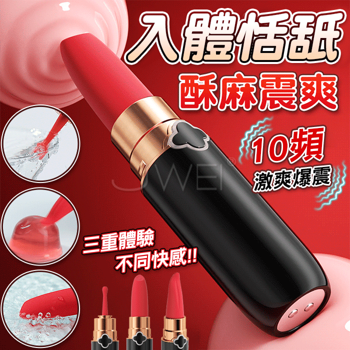 謎姬 MizzZee.口紅震顫.三頭替換多種玩法 10頻強震迷你跳蛋 (黑紅色)