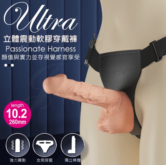 【BAILE】Ultra Harness 圓潤Q彈微調震動穿戴逼真按摩棒-10.2吋