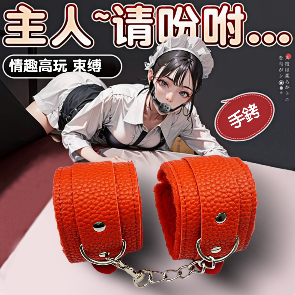 久愛.SM皮革紋理毛絨手銬-紅