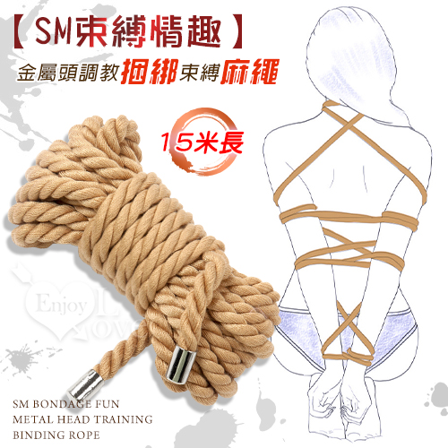 SM調教捆綁束縛繩-金屬頭-15米(棕)