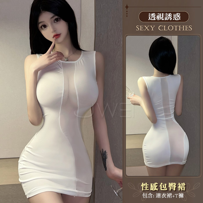 甜慾俏佳人.純欲蕾絲誘惑包臀裙夜店角色服-白