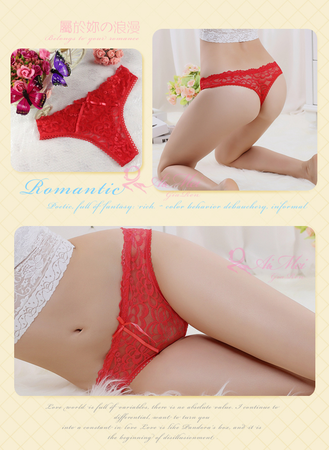 ►您現在的位置:首頁>情迷之夜!性感低腰花邊透明蕾絲T字褲﹝紅﹞