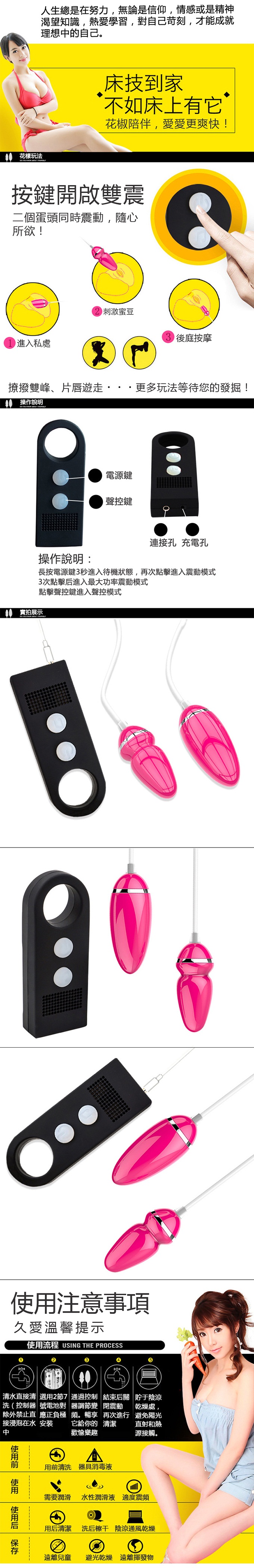 | 花椒跳蛋.聲控變頻花椒造型亮彩雙跳蛋 (紅)