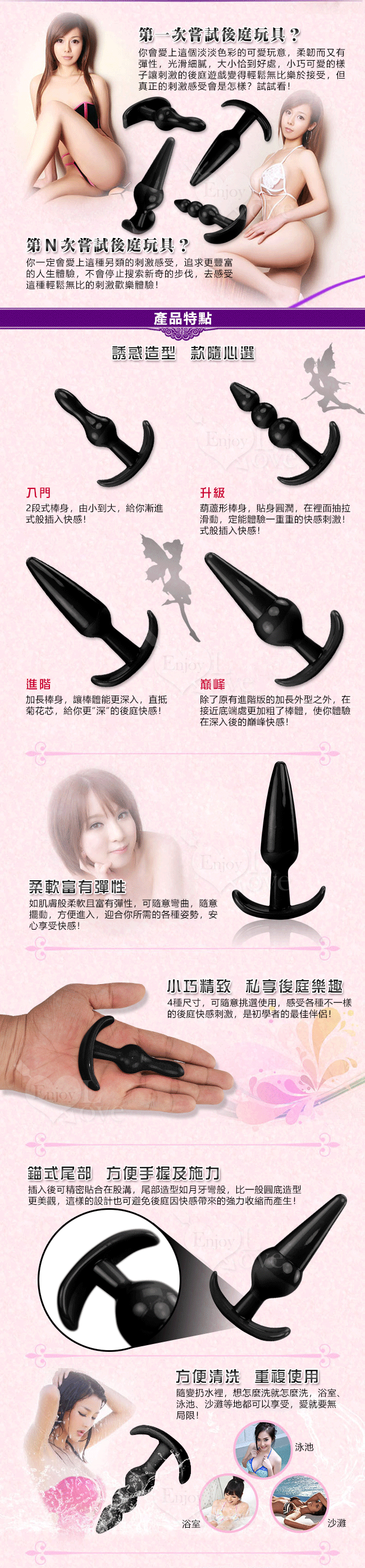 ►您現在的位置:首頁>後庭精靈‧四件套組肛塞 - 黑﹝初學入門首選一次到位﹞