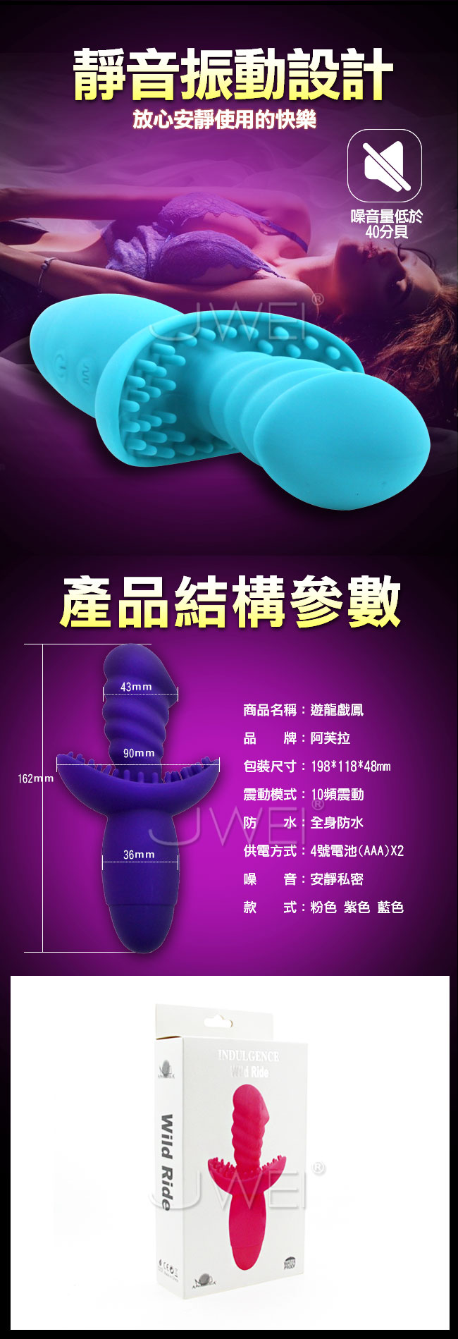 | APHRODISIA.Wild Ride 遊龍戲鳳 10段變頻防水情趣按摩棒(電池款)