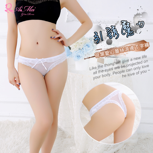 | 引誘魔力!腰際帶荷葉愛心蕾絲滾邊T字褲﹝白﹞