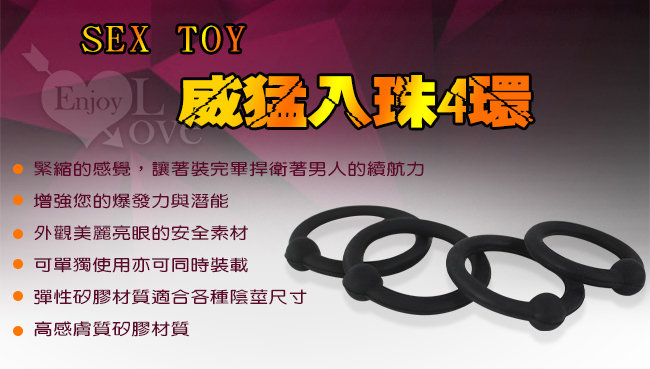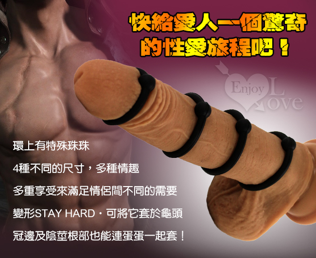 | SEX TOY 威猛入珠4環 - 多功能套環組﹝細膩硅膠+堅挺耐久+快感增強﹞