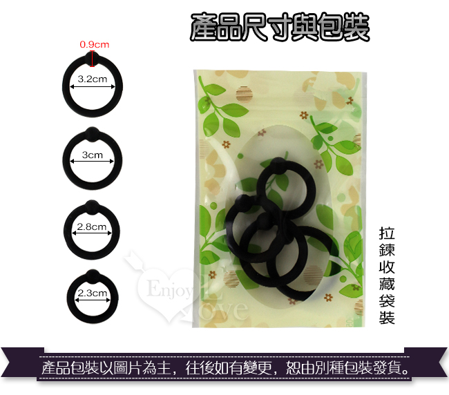 超值4個一組,各個大小不同, 將它套於還沒勃起的龜頭冠邊、陰莖根部、也能連蛋蛋一起套,黑猛屌環彈性韌性十足,能夠保持堅固,增加你的耐力,讓人刮目相看,而且炫、雄壯威武。