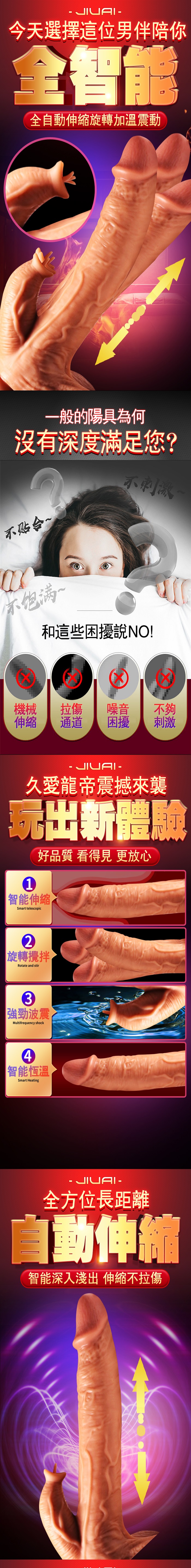 | JIUAI 久愛.龍帝.智能仿真震動伸縮旋轉加溫按摩棒