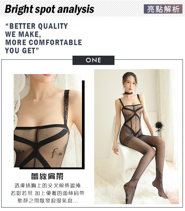 | 絲襪連身衣!蕾絲肩帶交叉線條字母元素設計裝