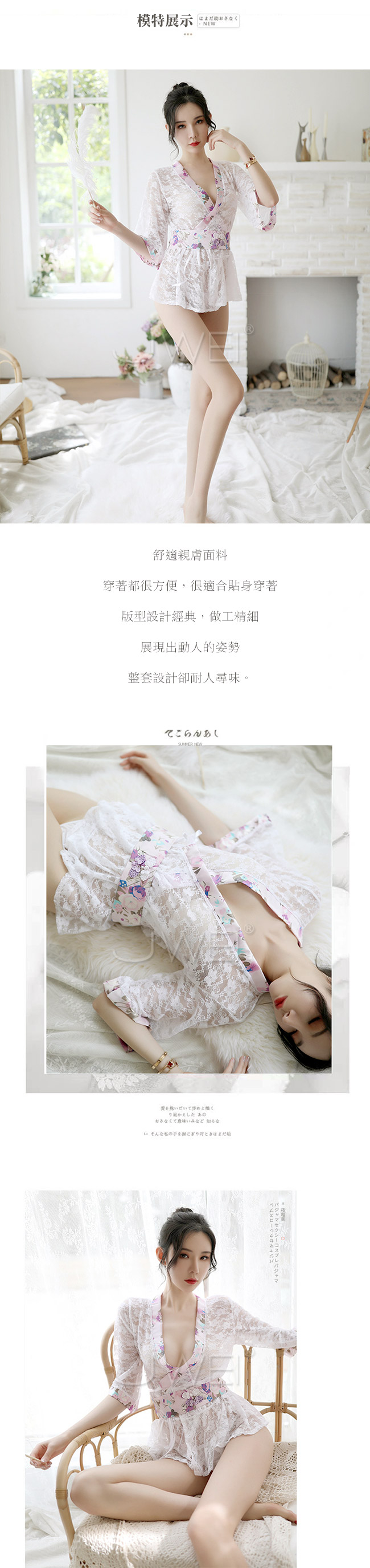 ◇◆日式清新.蕾絲透視印花和服三件組◆◇