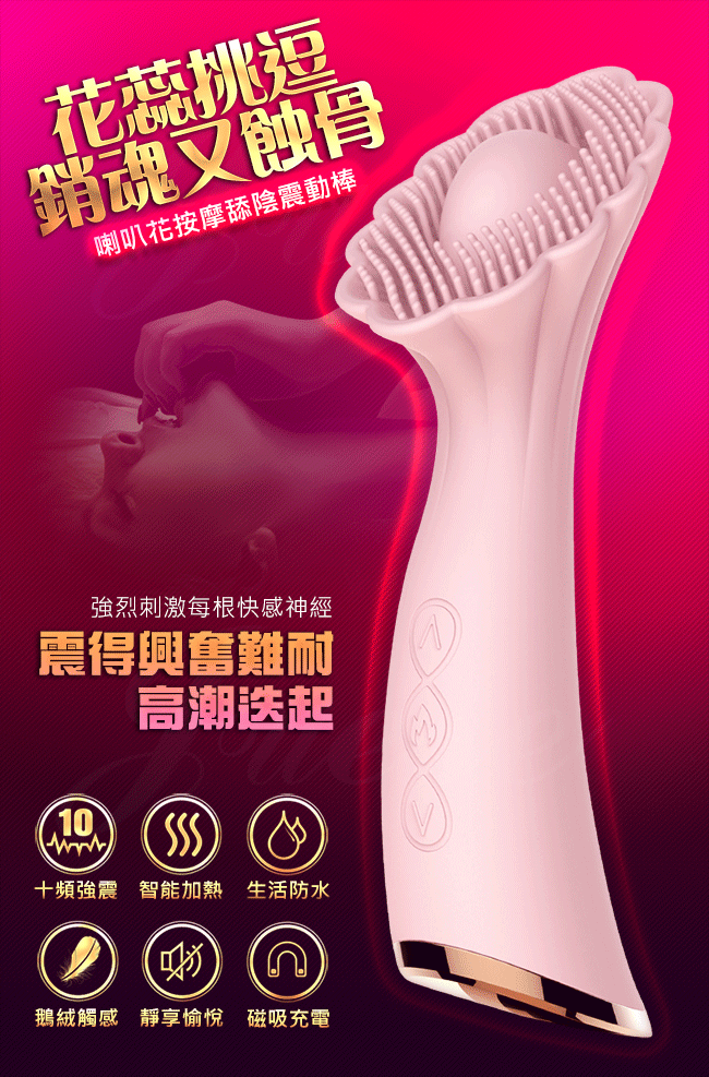 ►您現在的位置:首頁> 喇叭花 10段變頻智能加溫陰蒂刺激矽膠按摩棒-粉
