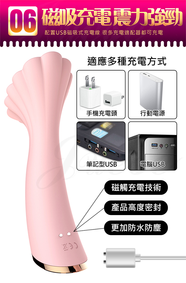 | 喇叭花 10段變頻智能加溫陰蒂刺激矽膠按摩棒-粉