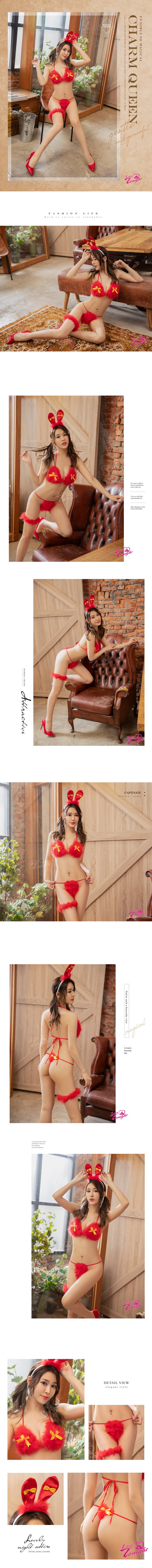 內容:比基尼式上衣x1+丁字褲x1+大腿圈x1+小兔耳髮箍x1