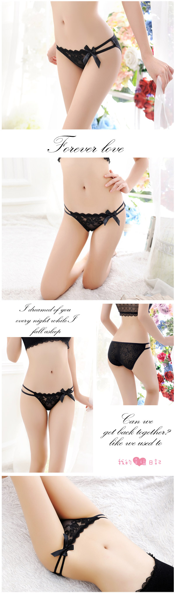 ►您現在的位置:首頁>可口甜心.蕾絲蝴蝶結低腰內褲(黑/膚)
