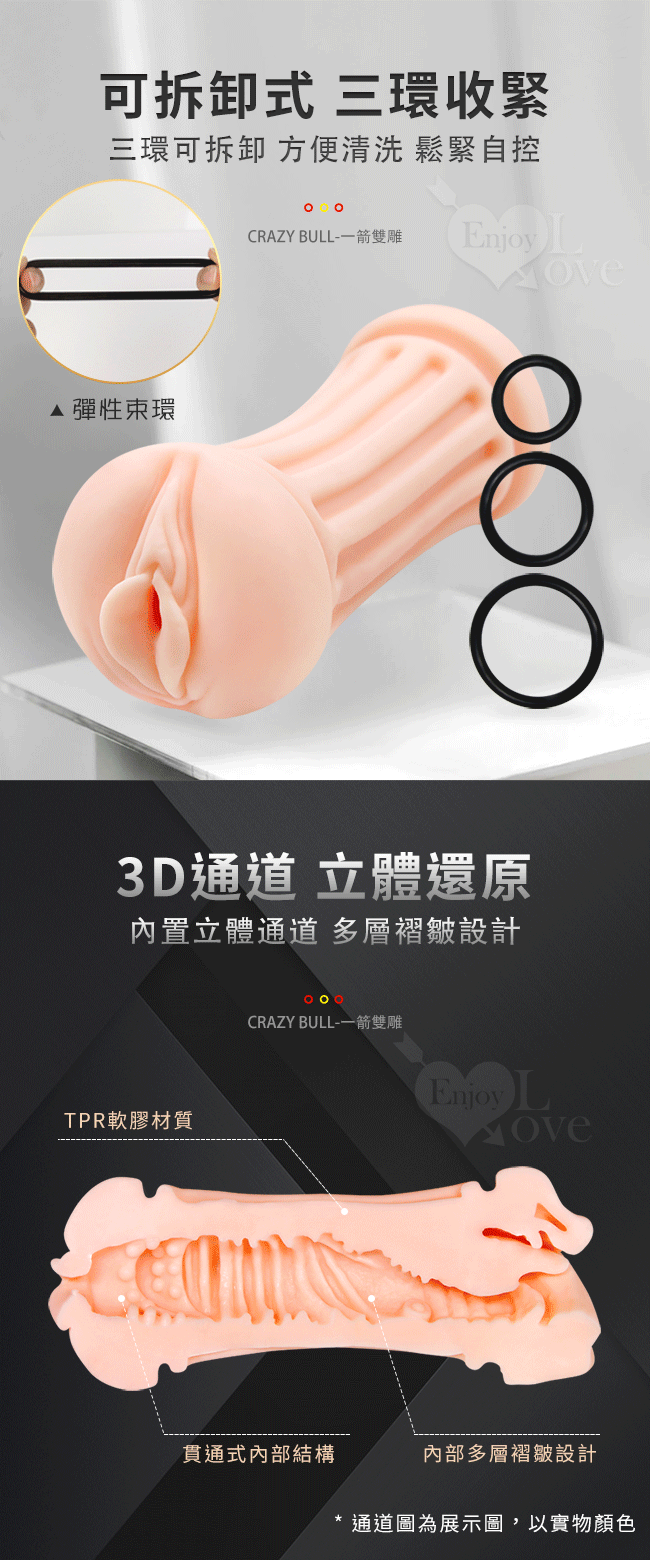 | 狂牛【CARZY BULL】一箭雙鵰 雙入口3D通道環環緊扣收緊自慰器