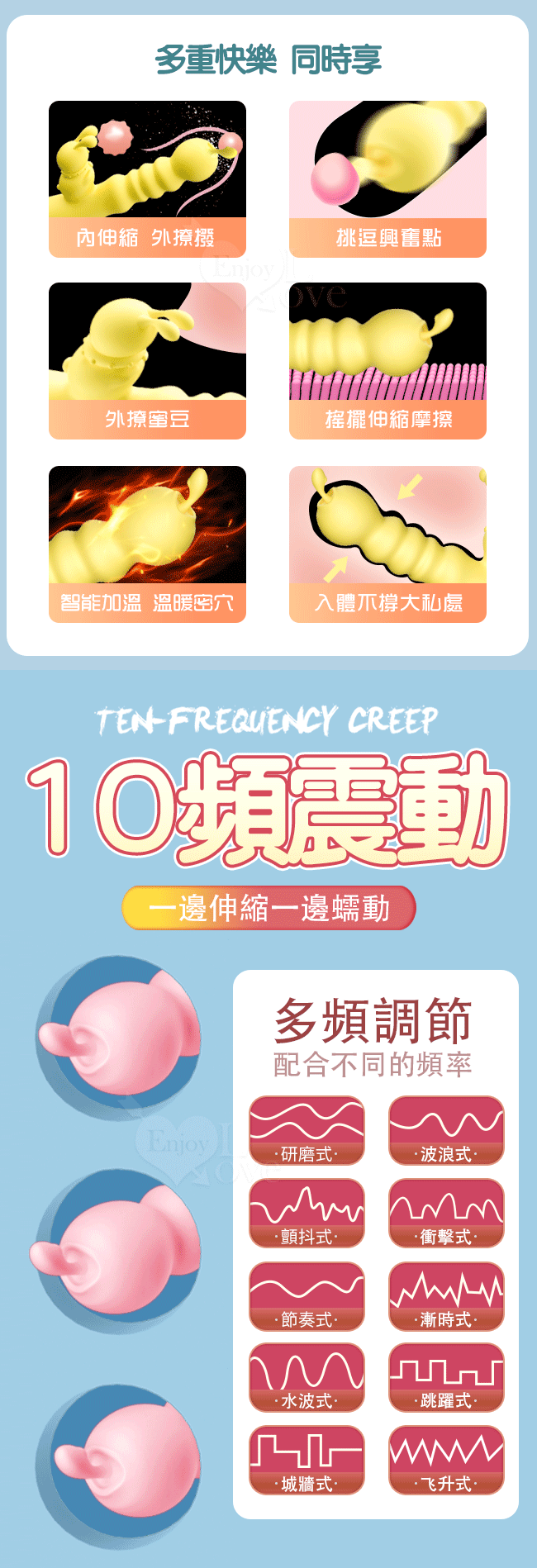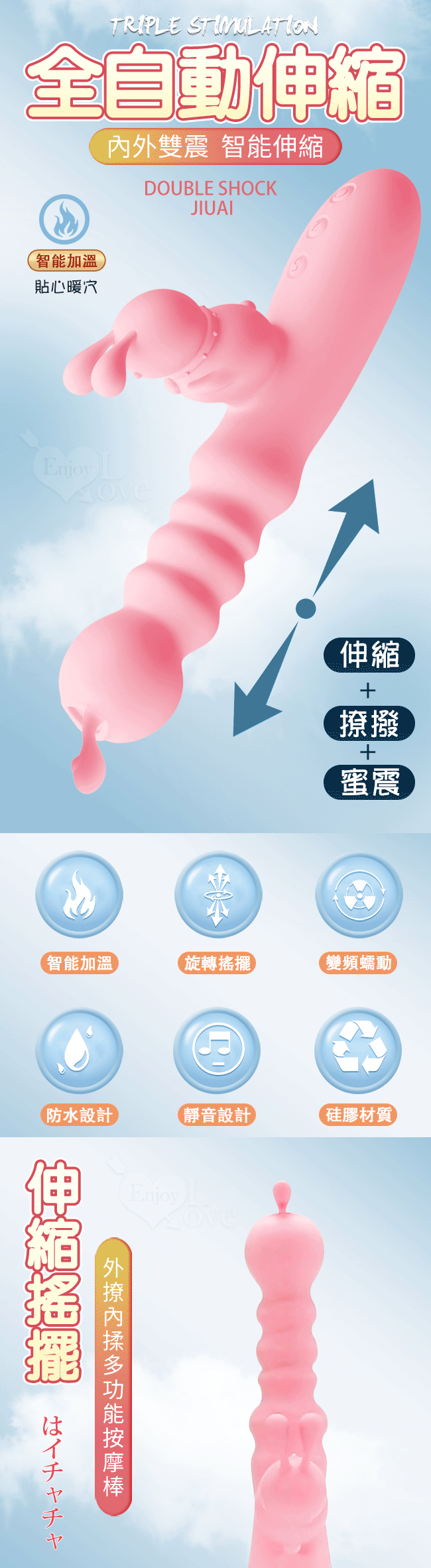 | JIUAI 久愛.TANGBAO 糖寶寶 ‧ 6X10外撩內揉多功能按摩棒 - 粉﹝伸縮搖擺抽送+雙震撩動+智能加溫+USB便捷充電﹞