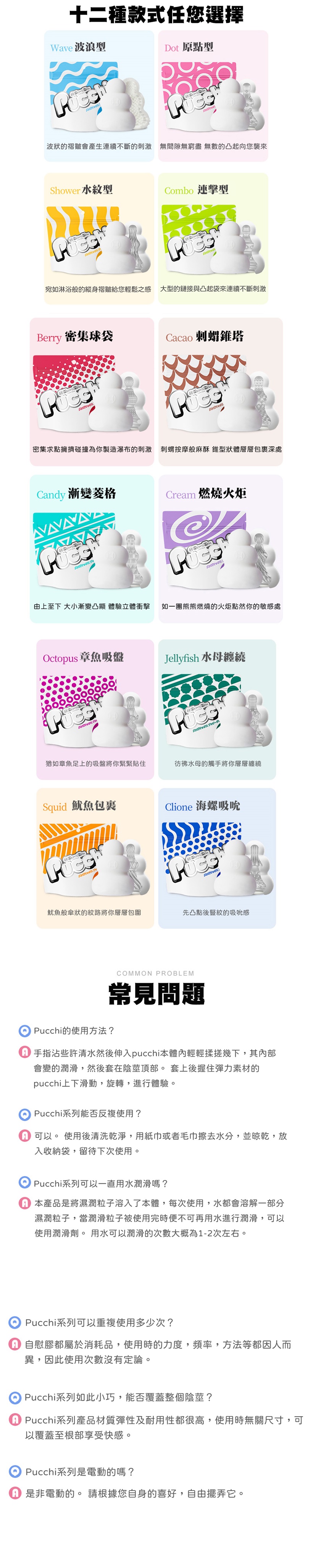 Pucchi是由只需要加入些許水分就能夠產生濕潤物質的材質【+Wetch】製成的,使用時不需要再加入潤滑劑。
