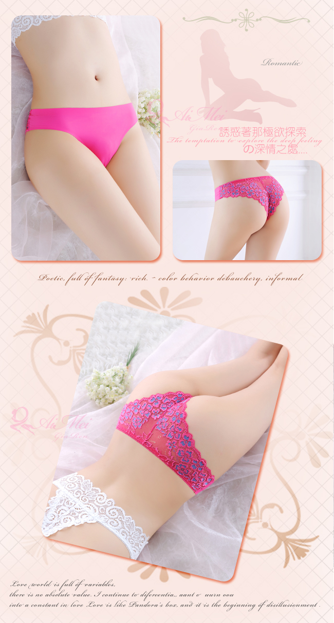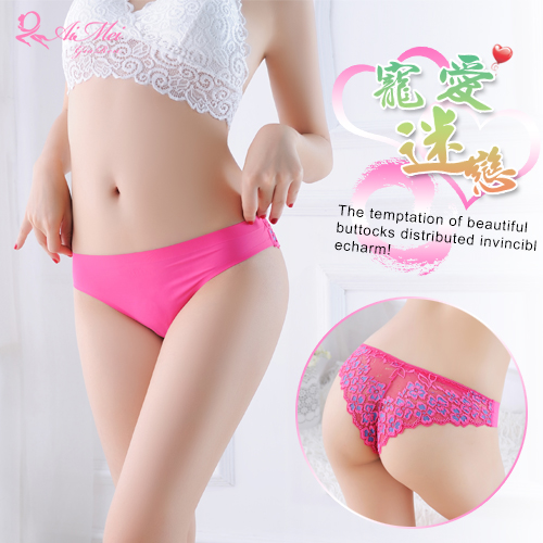 ►您現在的位置:首頁>寵愛迷戀!無痕蕾絲花瓣拼接冰絲三角褲﹝玫紅﹞