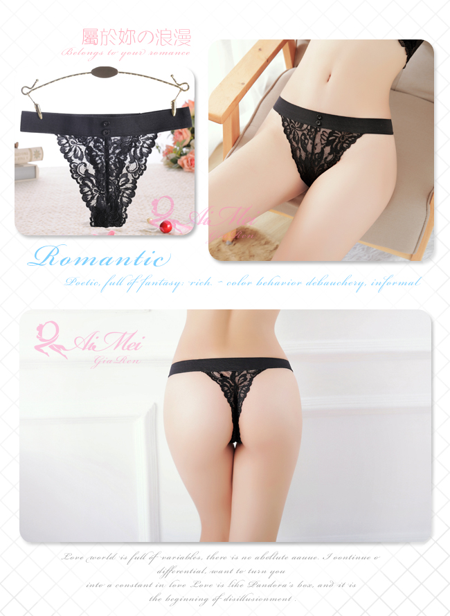 ►您現在的位置:首頁>窺探夢境!彈力腰帶小鈕扣蕾絲T字褲﹝黑﹞