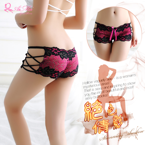 | 絕色倩影!側臀細帶鏤空緹花平角內褲﹝玫紅﹞
