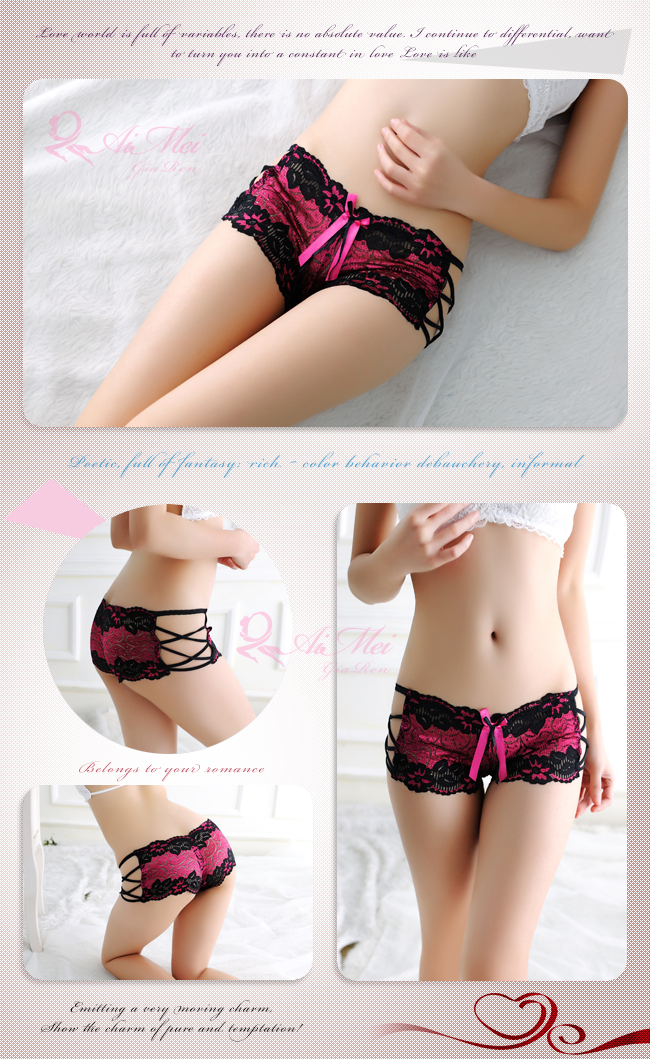 ►您現在的位置:首頁>絕色倩影!側臀細帶鏤空緹花平角內褲﹝玫紅﹞