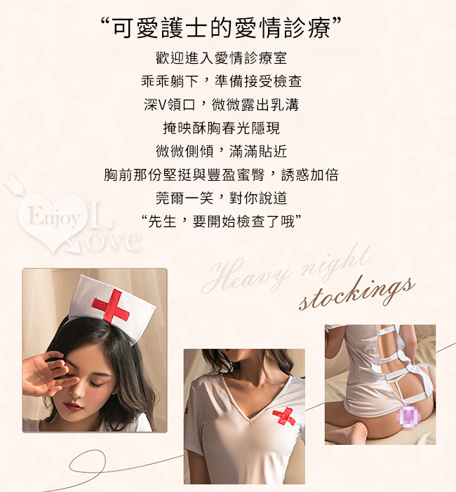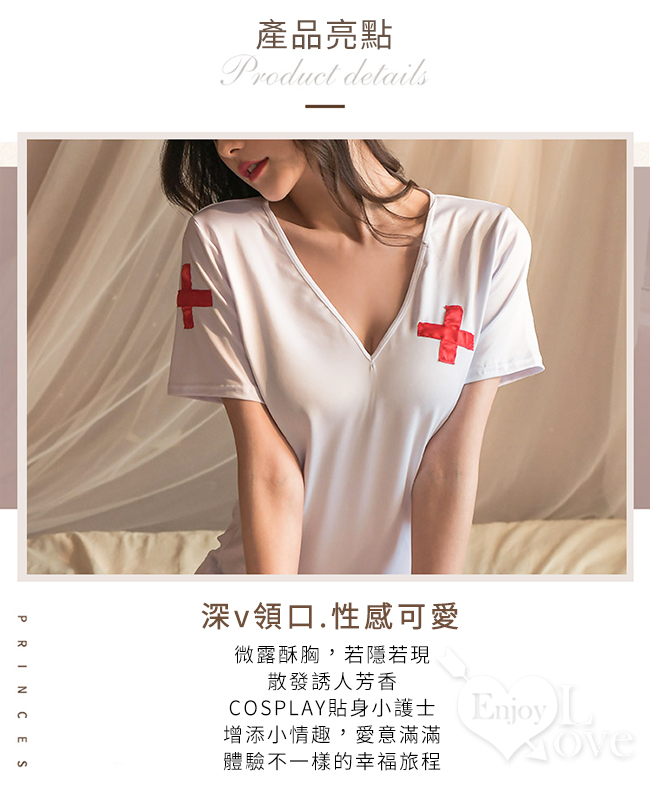 護士角色扮演服!十字髮箍V字領口橫線露背連身短裙四件式套裝