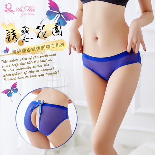 | 誘惑花園!薄紗蝴蝶結後開檔三角褲﹝寶藍﹞