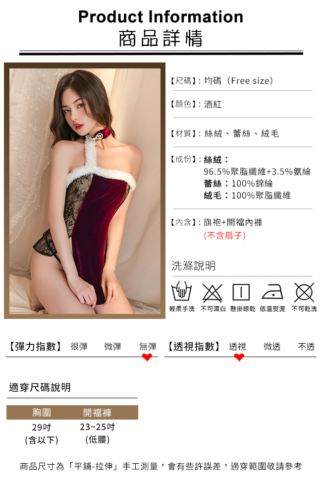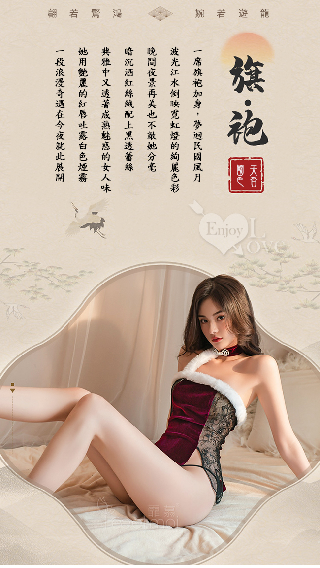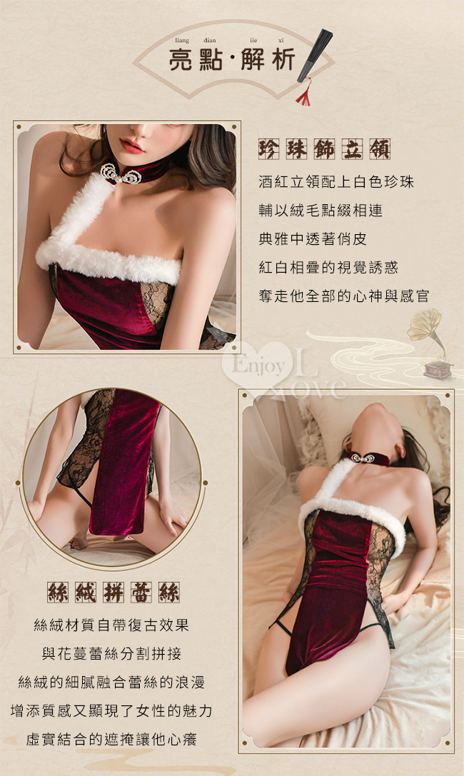 ►您現在的位置:首頁>仿旗袍睡衣!珍珠盤釦立領復古絲絨拼側蕾絲後交叉綁帶兩件組