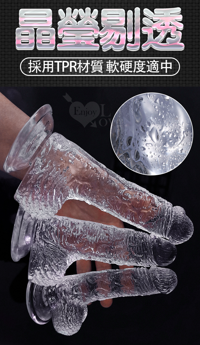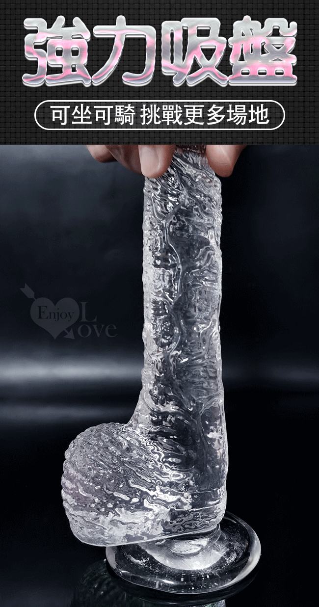 水晶真筋戰士 ‧ 7.7吋晶瑩剔透凸起經絡仿真肉質吸盤蛋蛋老二棒﹝大號﹞全長19.5公分