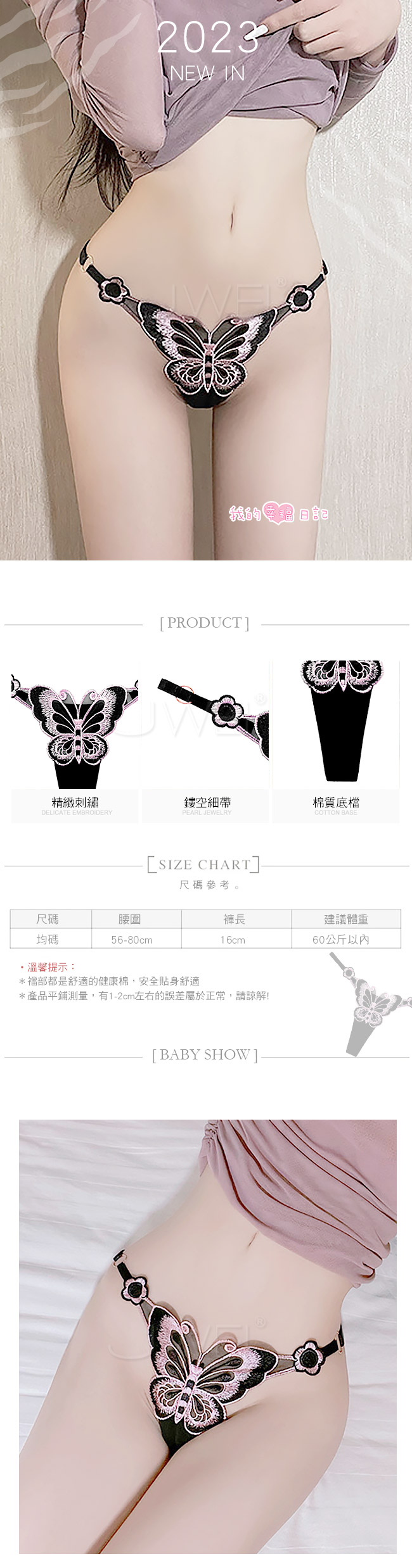 | 美艷絕倫.蝴蝶火辣透視刺繡可調節誘惑丁字褲-黑