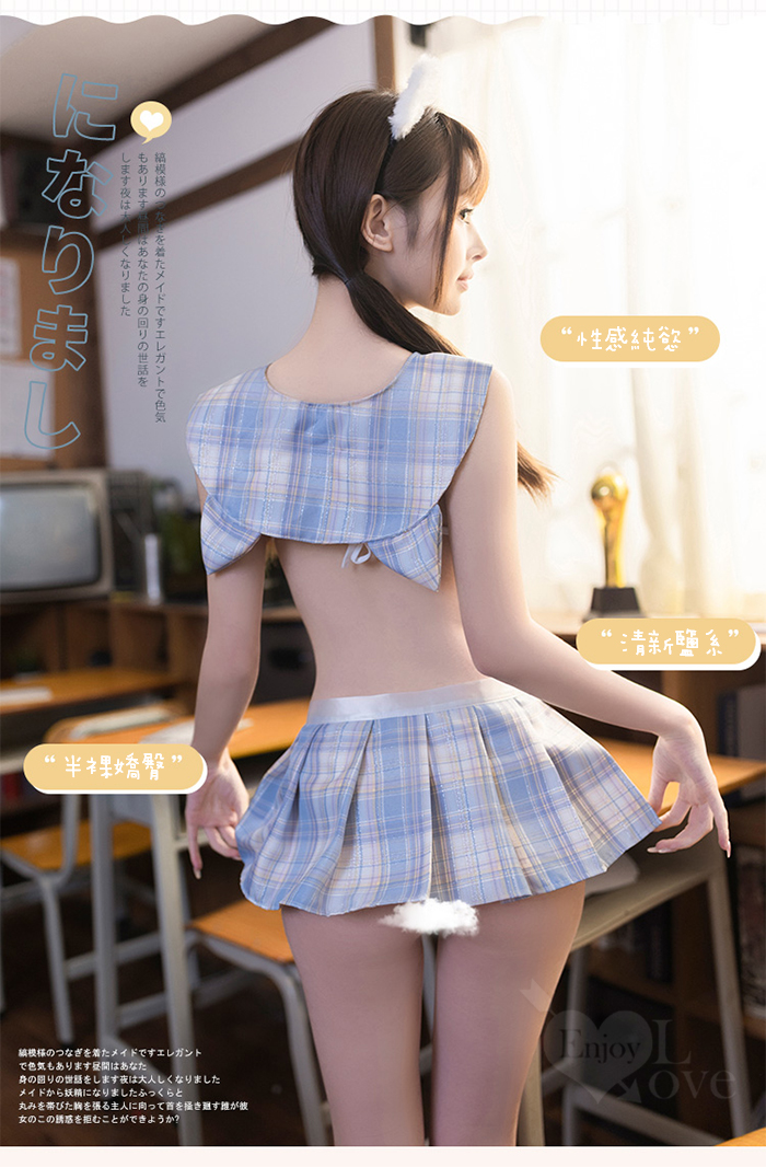 ※ 商品內容:領子+比基尼+綁帶短裙+丁字褲+長筒絲襪。(不含髮箍)