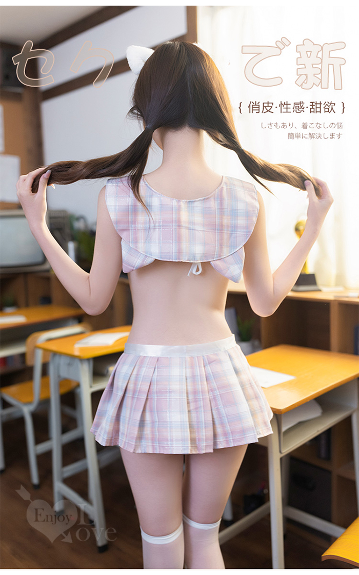 ►您現在的位置:首頁>學生角色扮演服!圓領貓耳造型前綁帶百褶裙五件式套裝﹝粉格﹞