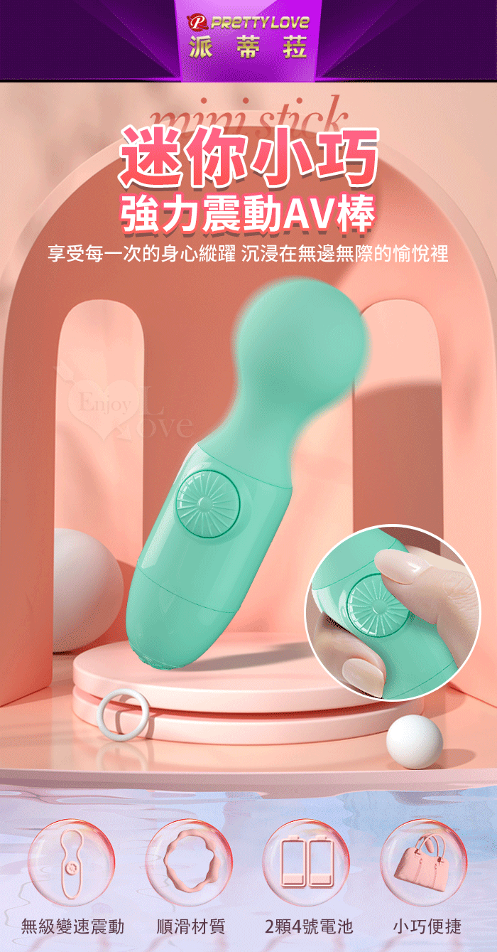 ►您現在的位置:首頁>PRETTY LOVE 派蒂菈 ‧ Mini stick 隨愛 無級微調變速小AV強力震動棒﹝湖水綠﹞