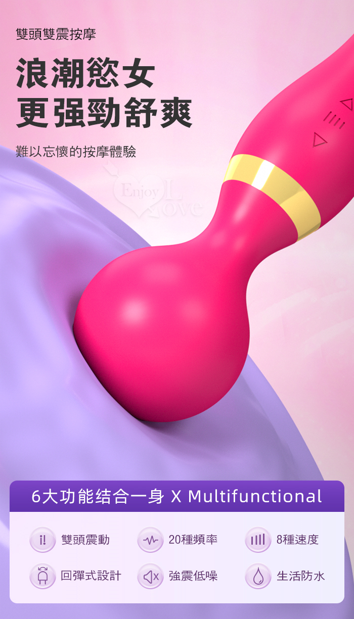 | Desire 浪潮慾女 ‧ 圓錐款 8x20頻強悍震感G點AV按摩棒﹝雙頭雙震+360度彎曲+舒適硅膠﹞紫