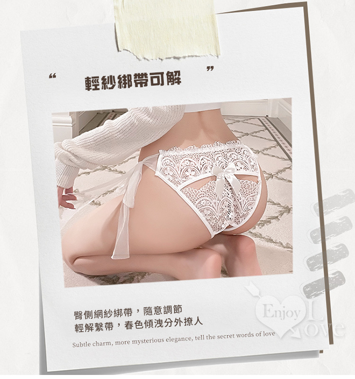►您現在的位置:首頁>網紗側綁帶透視花蔓蕾絲心機開襠褲﹝白﹞