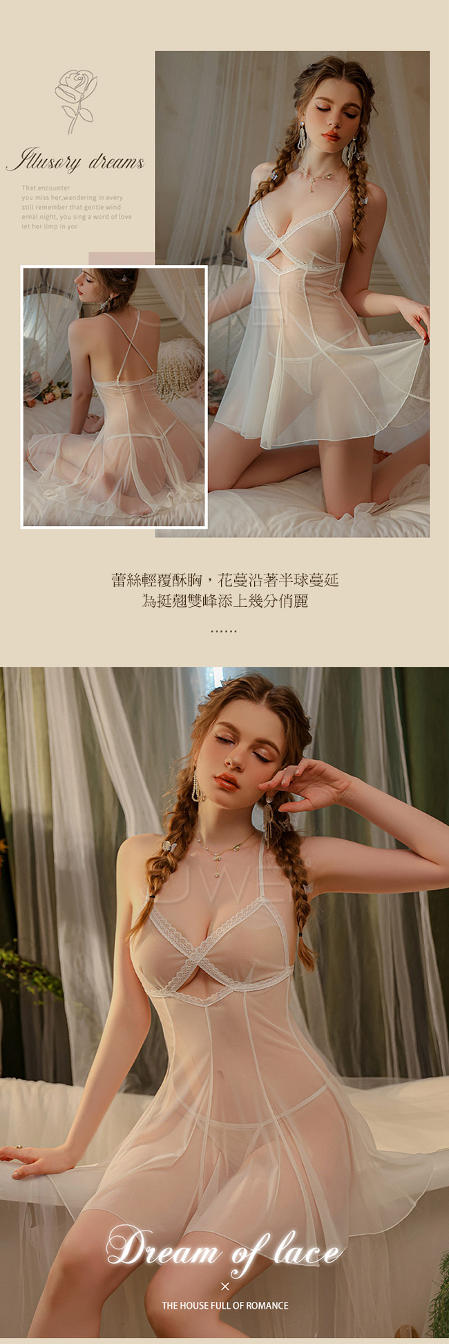 ◇◆迷離奇夢.性感透視撩撥吊帶紗裙2件組(白色)◆◇