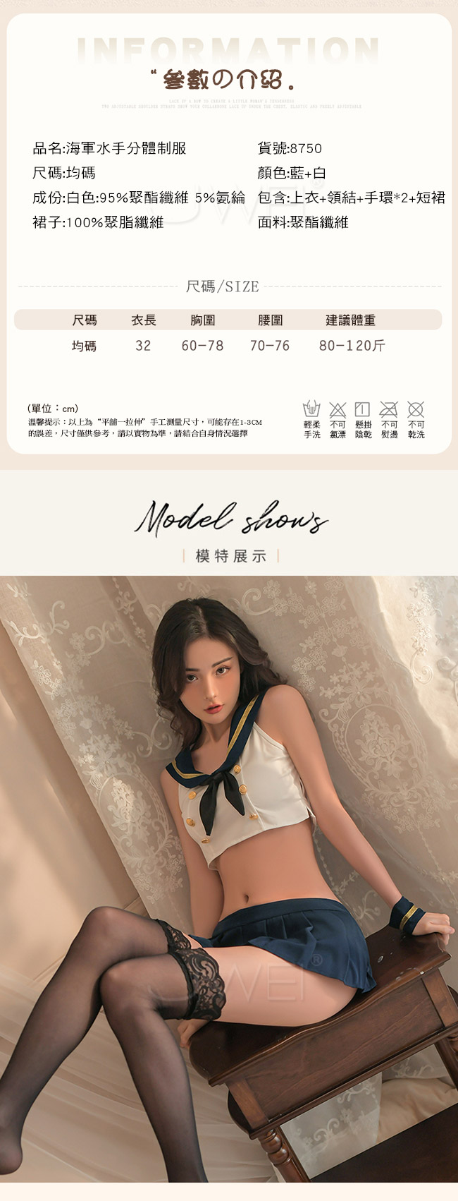 ■內容物:上衣x1、領結x1、手環x2、短裙x1 (長筒絲襪另選購)