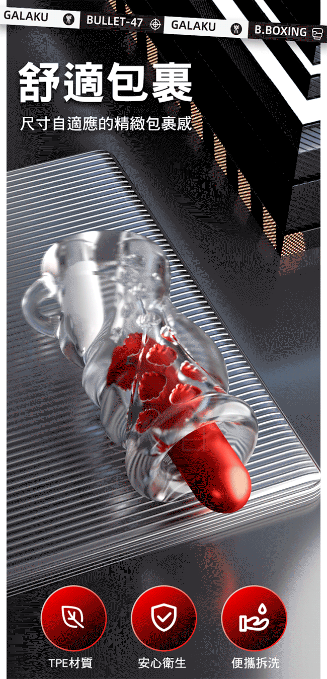 加時降敏訓練器,拉伸鍛錬,練出獸性做久挺男人,循序漸進的頻率,強 烈旋轉對根進行多頻,漸進拉伸,使根部整體得到充分舒張和鍛煉,有助 於莖部長-粗-大-頂。柔軟膠體,厚實肉感彈,Q彈通透,柔軟不易出油, 強拉不壞,柔韌膠體真實肉感;強震子彈頭,入體穿透直接,只需點擊直 接強震,穿透身體內部感知體驗更佳;內嵌式波震,模擬深喉巨震,電流 穿過般酥麻快感席捲全身!