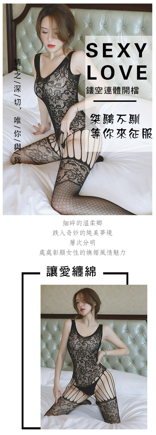 ►您現在的位置:首頁>謎漾漣漪.性感提花造型流蘇透視鏤空開襠連身貓裝
