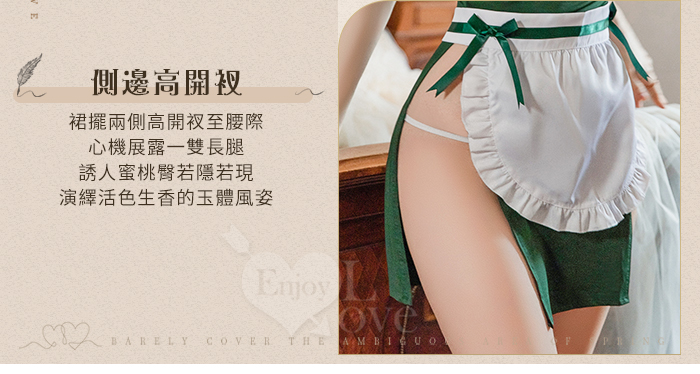 | 女僕角色扮演服!立領盤釦荷葉邊香肩側高衩後開襟美臀四件式套裝﹝黑﹞