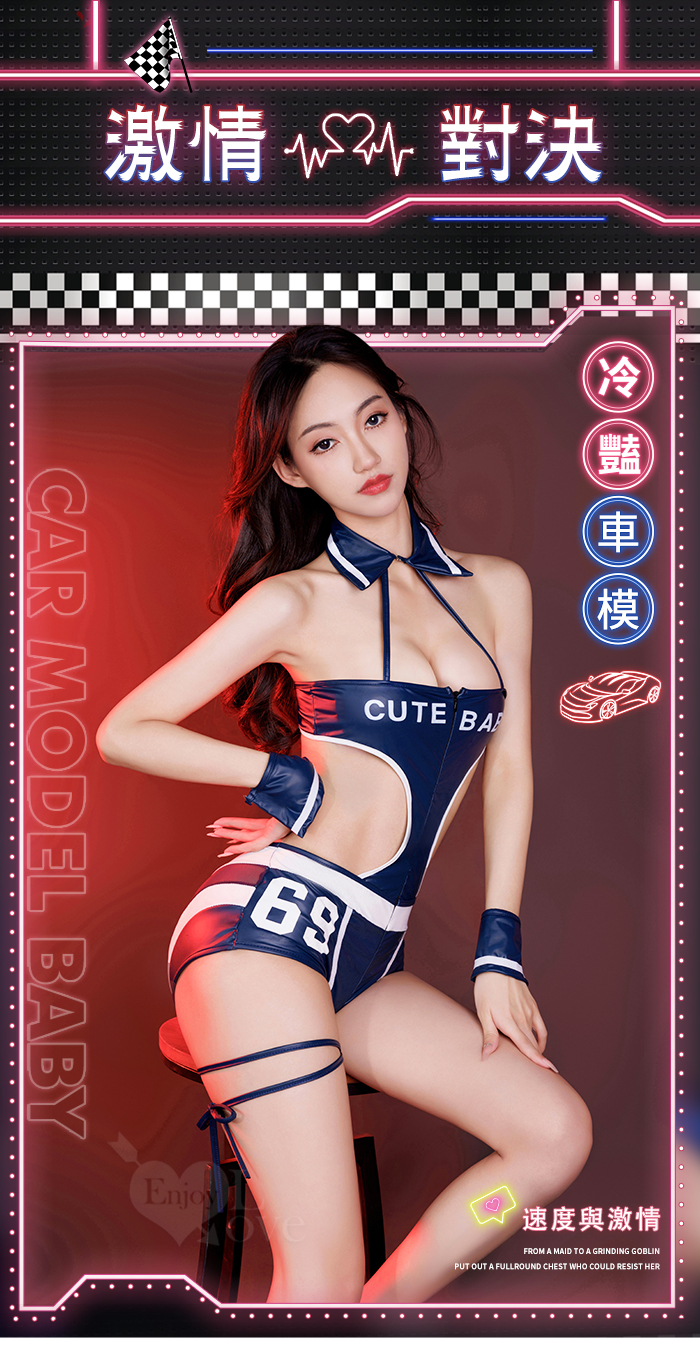 ►您現在的位置:首頁>【賽車女郎】雙頭拉鍊設計裸腰透紗露臀可開襠連身衣三件組