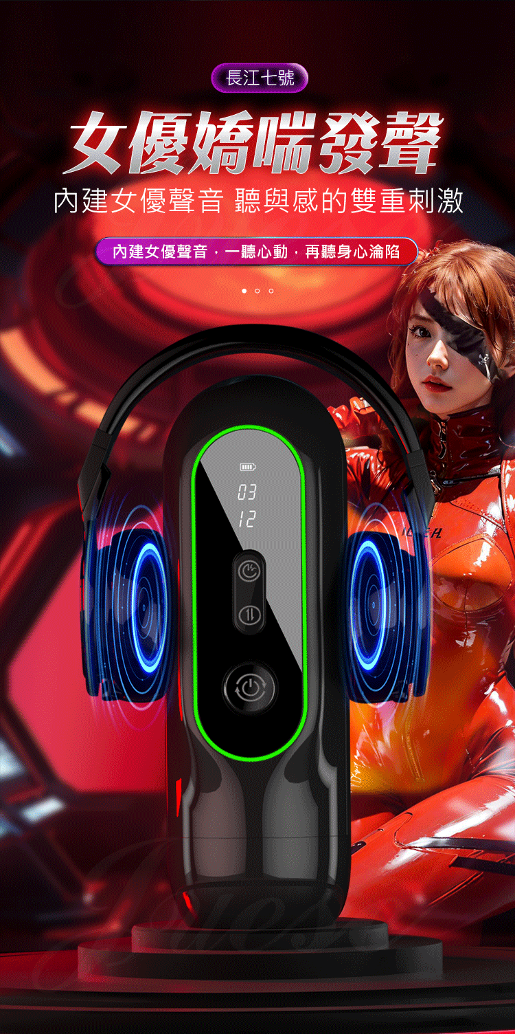 | 長江七號 15檔伸縮+4檔吮吸+9檔震動屏顯加溫發音USB充電電動自慰杯