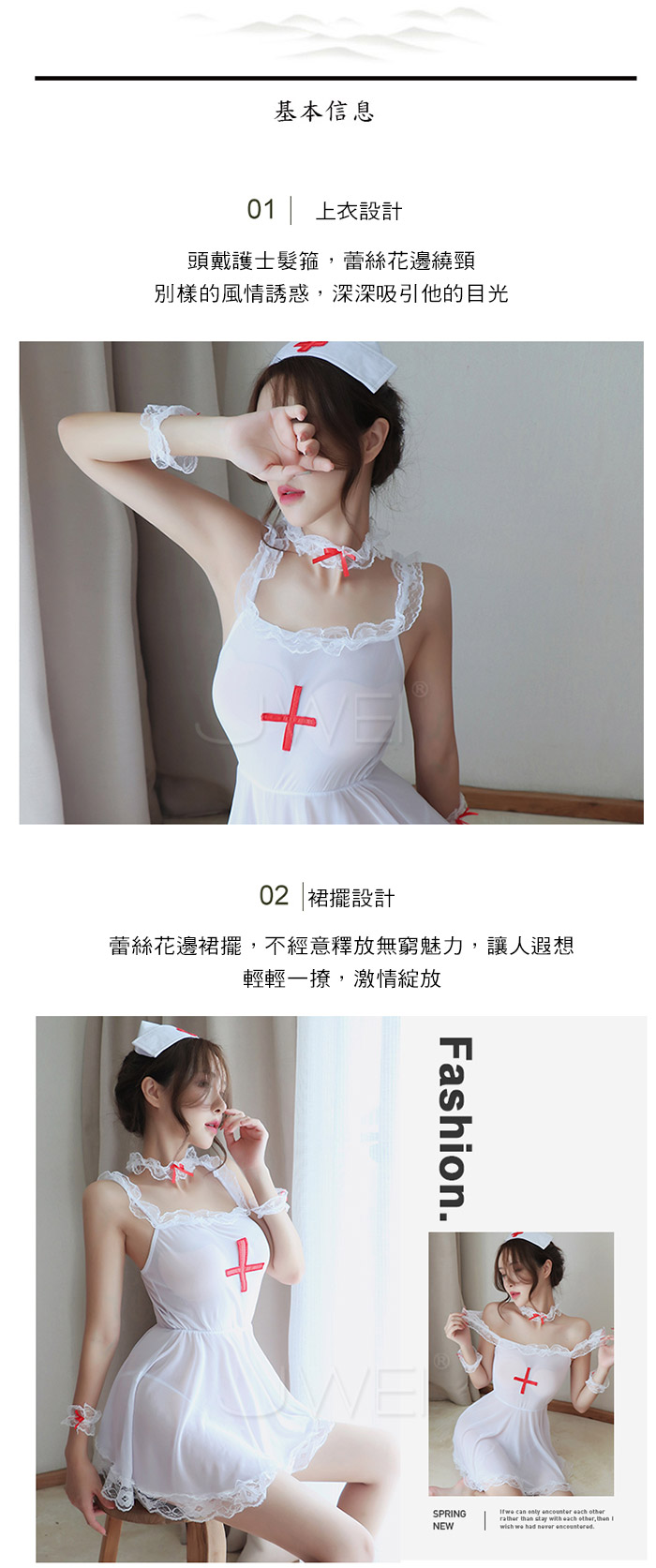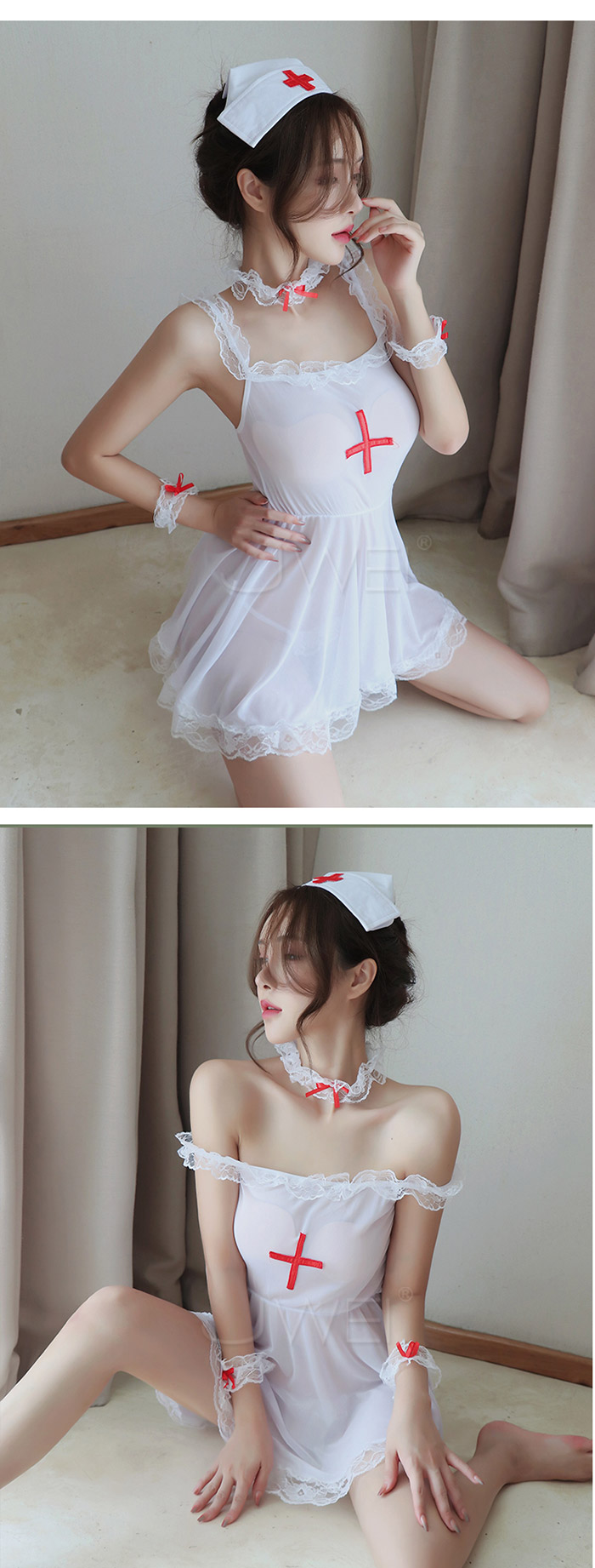 寵愛天使.性感透膚蕾絲花邊裙護士服套裝5件組