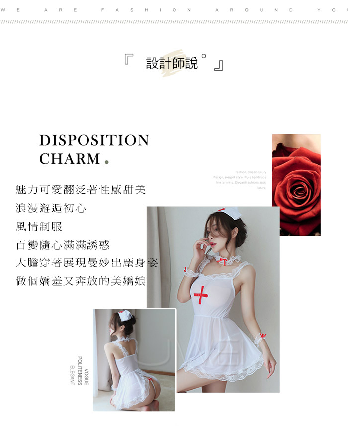 ◇◆寵愛天使.性感透膚蕾絲花邊裙護士服套裝5件組◆◇