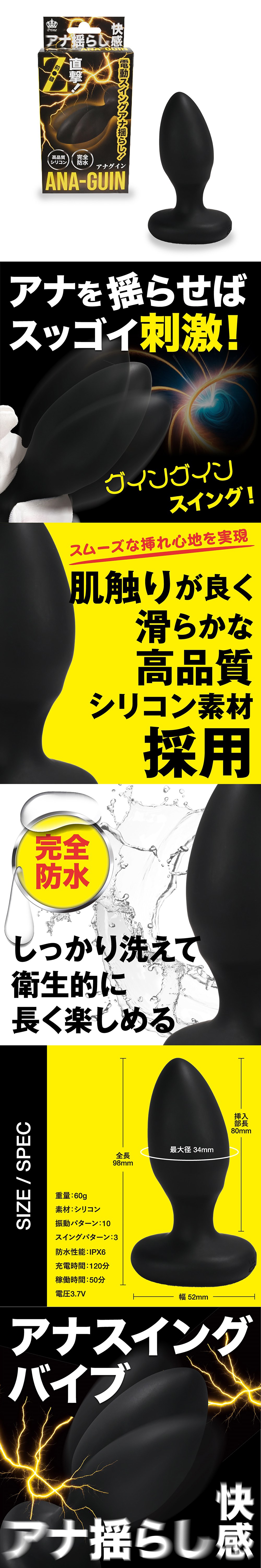 【上級快感、アナル揺らし】スイングと振動機能が付いたシリコンアナルプラグです。ハイトルクなモーターを搭載して力強いスイングアクションと上質振動がアナルを徹底的に刺激します。肌触りの良い高品質シリコン素材採用でスムースな挿入を実現しました。IPX6の高レベル防水なのでしっかり洗えて衛生的に長くご使用頂けます。リチウムイオンバッテリーは120分充電で最大50分連続使用が可能です。(使用環境により大幅に増減します。)