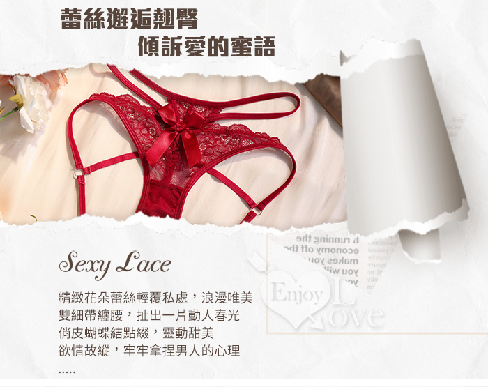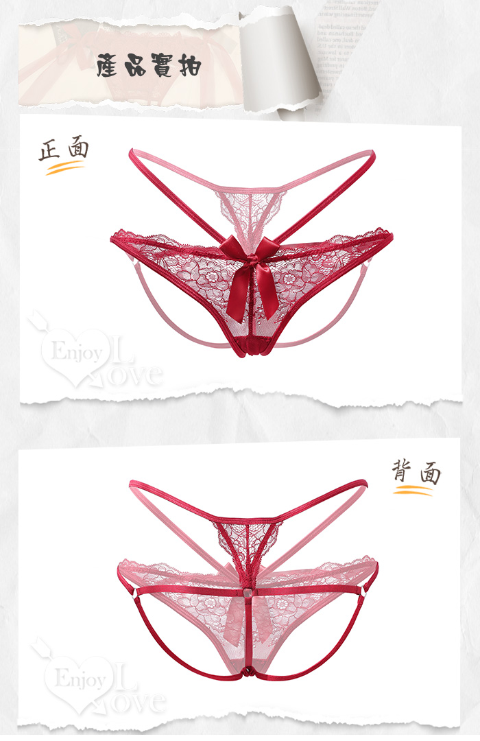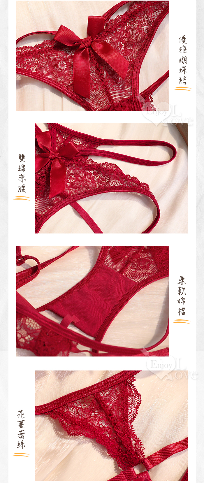 多線束縛透視花蔓蕾絲輕薄丁字褲﹝紅﹞