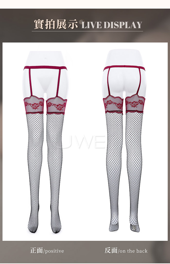 ►您現在的位置:首頁>誘愛情網.法式蕾絲花邊連腰吊帶一體網襪-紅