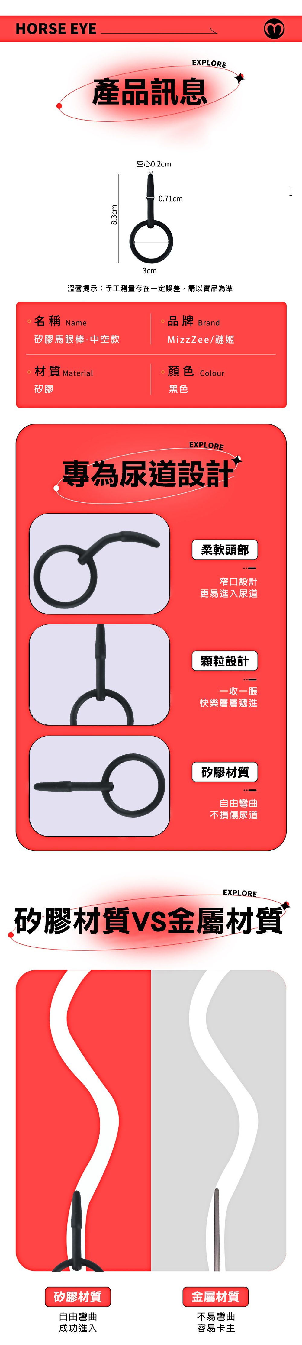 | 謎姬 MizzZee.矽膠馬眼棒-中空短款