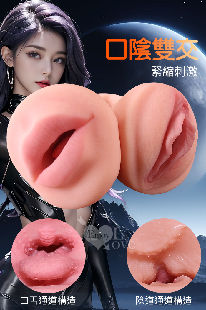 JIUAI 手撸聖杯 ‧ 仿真帶舌口陰雙頭體驗包覆蜜道自慰飛機杯